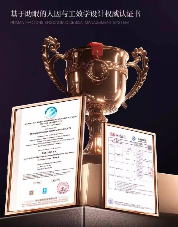 传承了经年累月的专业制枕经验,DOLOMIA不断革新技术,不断加深睡眠枕对于人体的助眠效果,就在今年上半年,DOLOMIA部分凝胶枕和肩颈鳍系列枕荣获了“人因与功效学设计认证权威证书”,要知道,这项证书想要拿到绝非易事,经认证的DOLOMIA产品或设计需通过严苛的脑电波监测(EEG)验证:用户在使用后,入睡阶段脑电波从高频β波(活跃状态)快速过渡至低频θ波、δ波(深度睡眠状态),且整夜睡眠期间脑电波波动幅度显著降低,趋于平稳。该证书切实反映了DOLOMIA枕品能给体验者提供较好的睡眠质量。